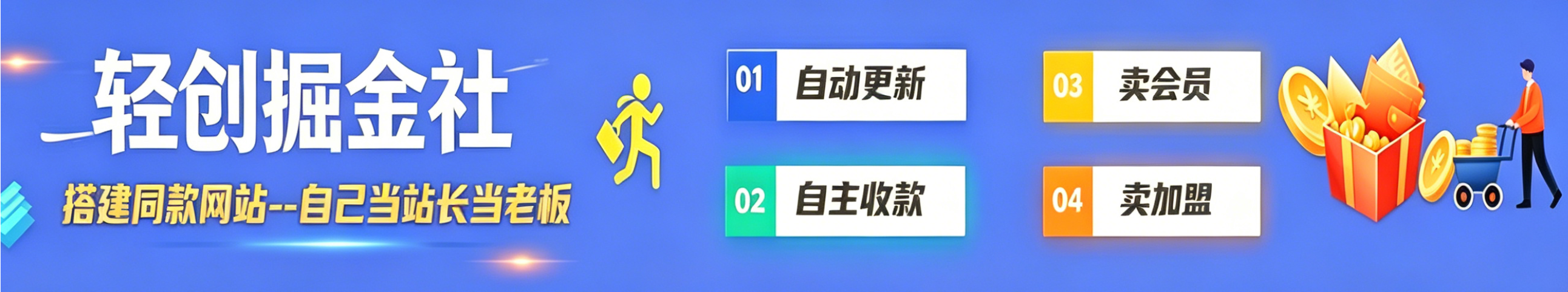 【轻创掘金社】可搭建同款网站+自己当站长+当老板+月入5万+